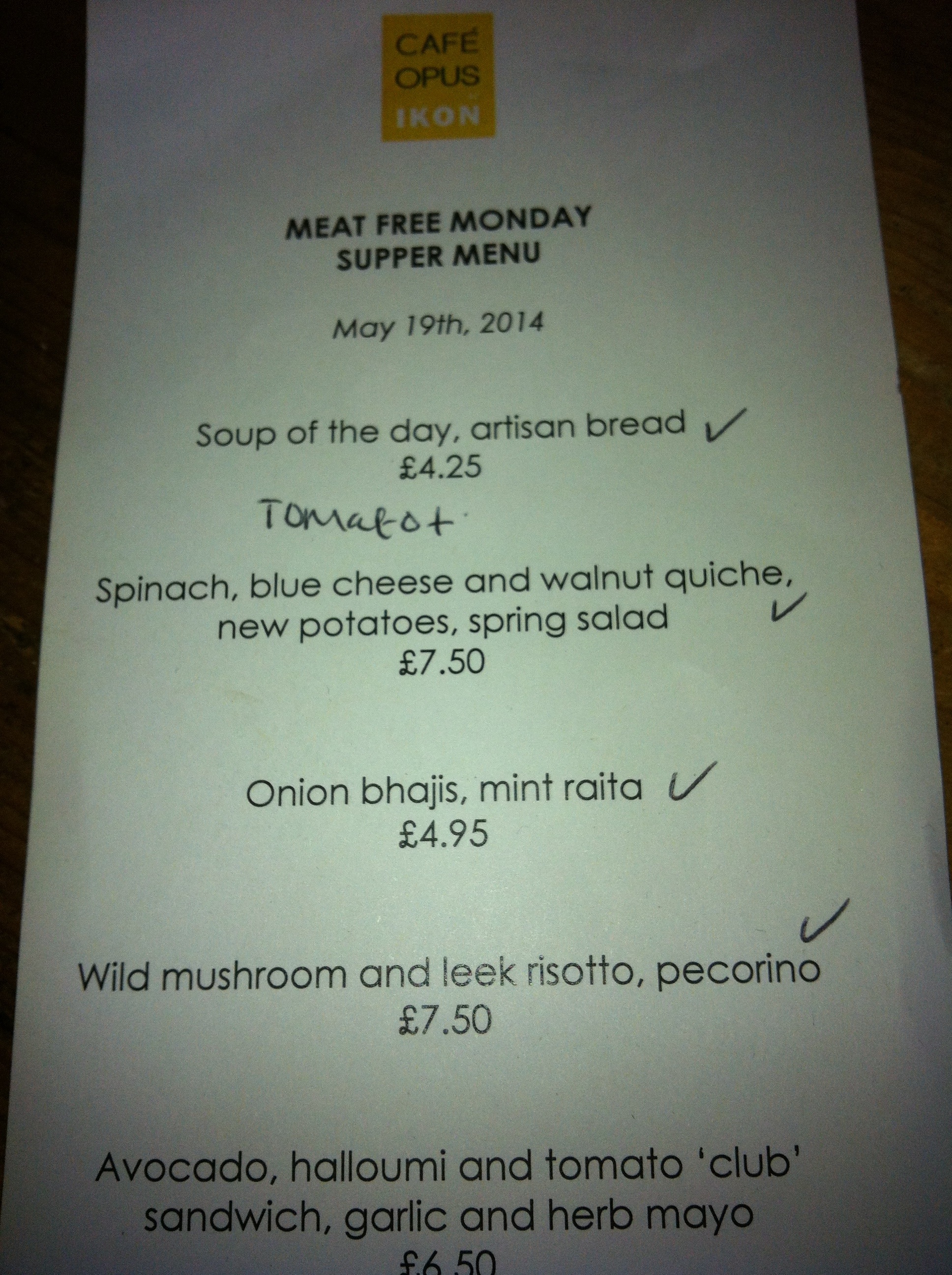 2 thoughts on “Cafe Opus ‘Meat Free Monday’s
