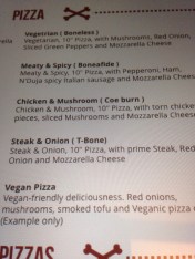 Barebones have a great concept, a quality product and a fun looking and hard working van. They have an innovative menu, good vegetarian and vegan options and their pizza is good value for the price between £5 and £8. Dependent on choice.
