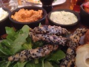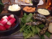 The spicy Hummus and pesto Mayo (I didn’t really enjoy the goats curd too much) added a good dipping element with the crunchy and well made seeded straws and toasted pitta. A good board.