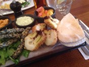 The Veggie Board may not be an exotic or innovative dish but it’s summery and delightful for lunch. Its not too heavy and idle for grazing with a pint, maybe outside. It’s the ingredients that make the board work, I’m not sure it would work so well in the Winter for example when the produce is not so fine, but it all depends on what’s put on the plate and makes up the board.