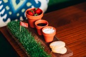 The dish worked in parts. It was fun, the ingredients were good but maybe the dipping could have done with a optional cocktail stick to assist the dipping. Maybe the flag could be used for that purpose.