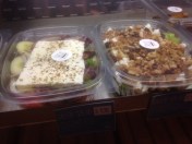 For vegetarians there are numerous cheesy pie options, plus a fennel pie, pumpkin pie, a tiropita, (cheese pie), a leek roll and a mixed vegetable pie (Skopolos) which is divine. Also the pre packed salads including a delicious Greek salad are available if pastry is not your thing.