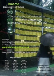 Kinome Pop up restaurant is at The Kitchen Garden Cafe, Kings Heath, 17 York Road, B14 7SA.