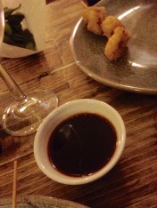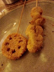 This was followed by two Vegetarian skewers which like tempura were fried vegetables and came with a Tonkatsu sauce which is a vegetable and fruit based sauce often served with fried food. Both weed lively and whetted the appetite for more.