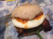 The Good Morning Muffin is a Roasted Portabello Mushroom, Free Range Egg, Spinach and Leon made Ketchup served in a lightly toasted English Muffin. Cost £3.75.