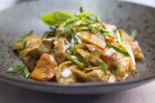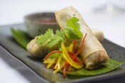 For Vegetarians try Tom yum noodle soup flavoured with lemon grass, galangal and kafir leaves, Thai Spring rolls, Veg Massaman Curry: Potatoes, onions, carrots, pineapple, Zucchini and peanuts in coconut milk or stir fry mixed vegetables with tofu garlic and soya. Or Pad Thai stir fried rice noodles and pad egg noodles.