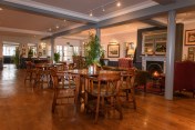 The bar overlooks a large wooden floored room, perfect to house the hustle and bustle of drinkers in front of the open fire. Just right for Winter.