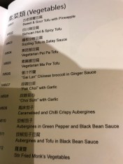 At Wing Wah a Chinese restaurant near The Hippodrome theatre in the thriving Chinese Quarter of Birmingham, that misfortune certainly doesn’t apply. The Vegetarian and Vegan section of the menu takes up a few pages, so I’m now feeling the scratching of the head whilst I decide and then I decide and decide again only to realise that I need to put my reading glasses on ( because I’m getting on in age) as a be misread the dish I thought I was going to have. Is this stress? Far from it. It’s brilliant to discover, and bravo for Wing Wah for it.