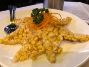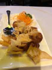 Ruth and I chose to share three starter dishes: Sweet corn fritters, Crispy Spring rolls and Deep fried Vegetarian won tons.