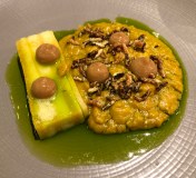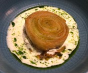 Take the Potato-goats cheese, onion, lovage first course: a warming dish, with a depth of autumn flavours that enticed the palate and was beautifully constructed.