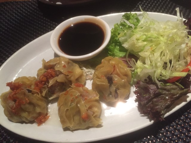 Kanam Jeeb Pak starts me off. Steamed mix veg dumplings topped with crispy garlic and served with a delicious sweet dark soy sauce contrasting perfectly the depth of flavour in the dumplings which are perfect for dipping. Balanced flavours, crisp and firm a delight.
