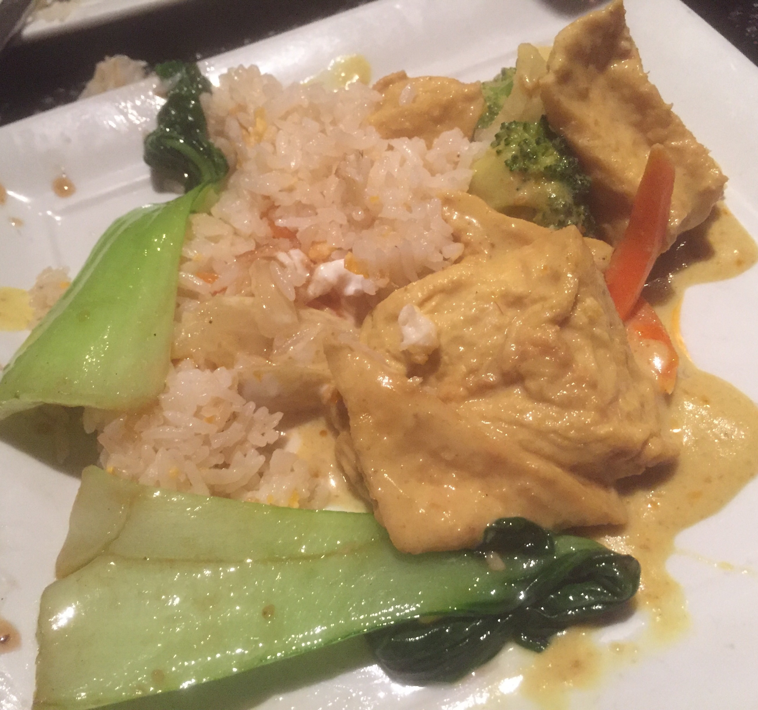 Sabai Sabai have a huge choice for Vegetarians from stir frys to a recommended  Phad Thai and a tempting set menu for the undecided. My choice the Gang Ka Ree, yellow curry, was a colourful and vibrant veggie slice of heaven. Golden fried Tofu simmered in coconut milk with potatoes, onion, mixed veg in a mild and sweetly spiced yellow curry sauce. It’s a deeply satisfying main course with just the right amount of sweetness from the coconut milk to pronounce the rich creaminess which though milder than some of the dishes packs a punch on many levels with its vegetables and sophisticated delicacy.