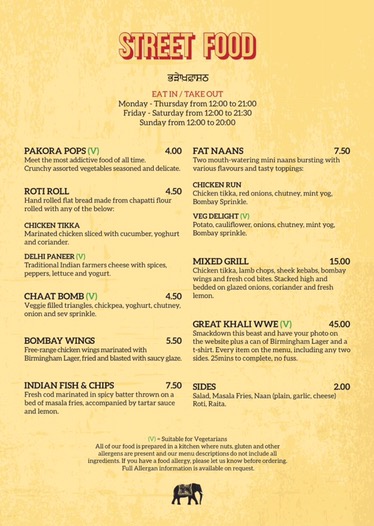 For the drinks all bottles (Indian Brewery beer) and Birmingham Lager in a can and keg are veggie and vegan friendly.