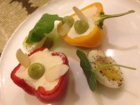 Veggie Dishes include Chaat, veg samosas, chilli paneer and a dish called ragda Pattice, crispy potato cakes on masala yellow peas, with homemade chutneys.
