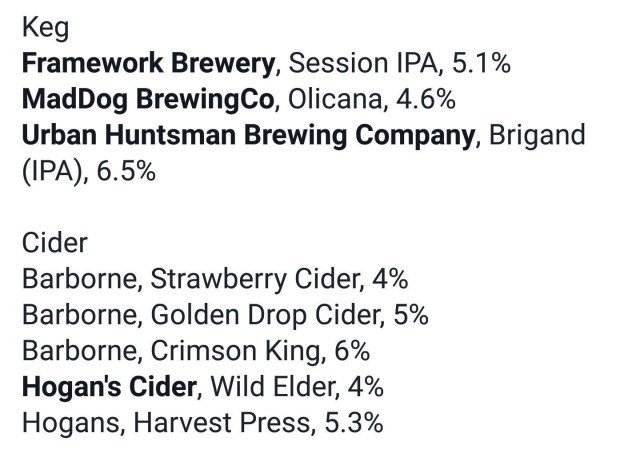 Brewery's and Beers on offer include are mostly local but include a few from further afield.