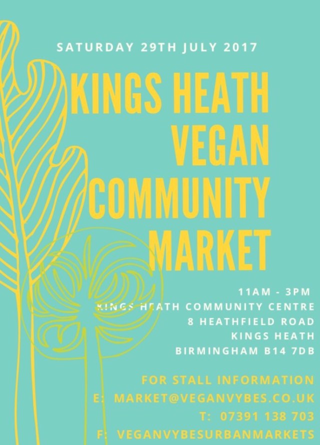 They will also be hosting the Kings Heath Vegan Community Market on 29th July from 11am-15.00.