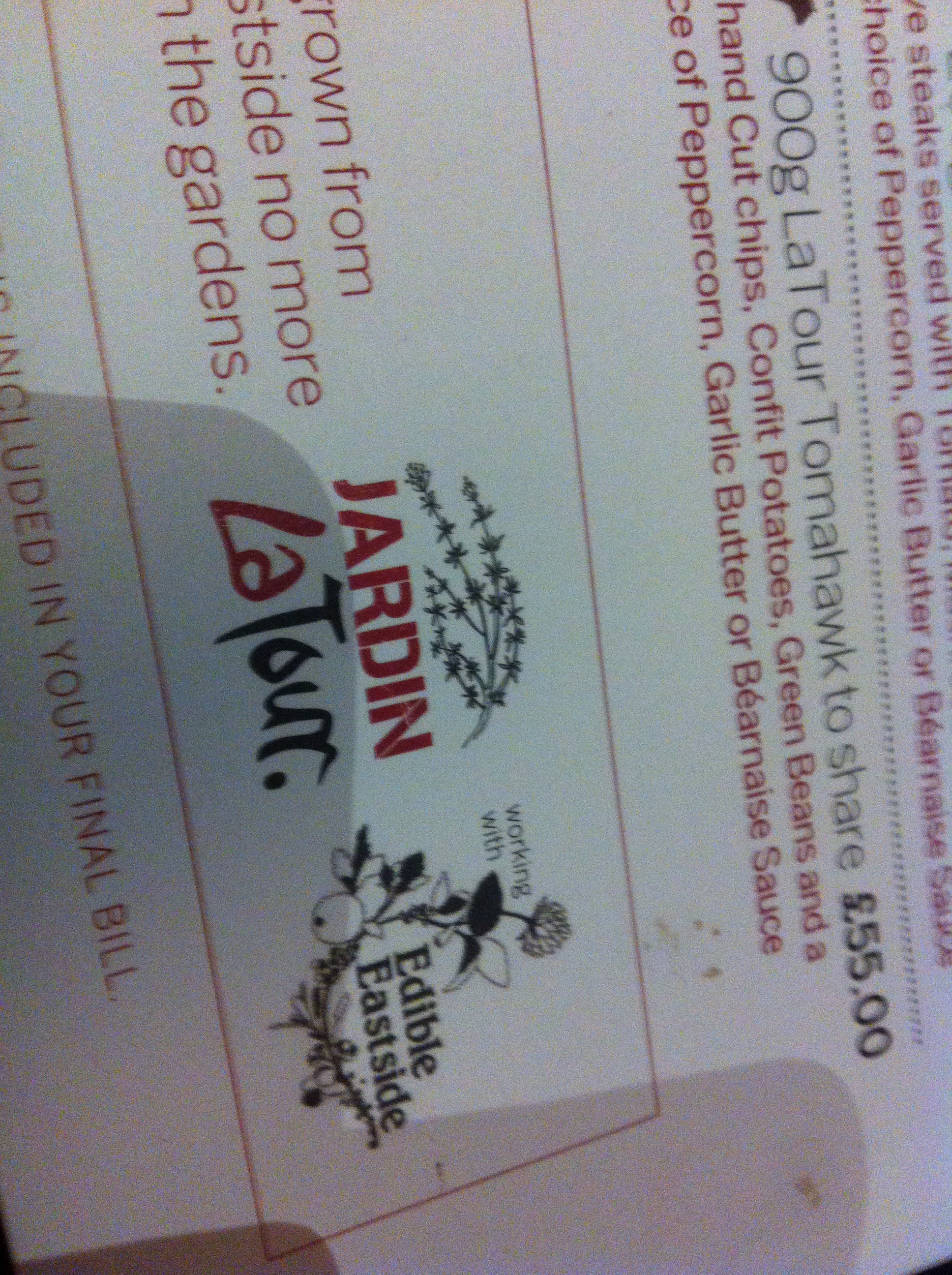 La Tour Grill uses seasonal ingredients. Sourced locally with some produce grown on their roof top garden allotment, Jardin La Tour, supported by