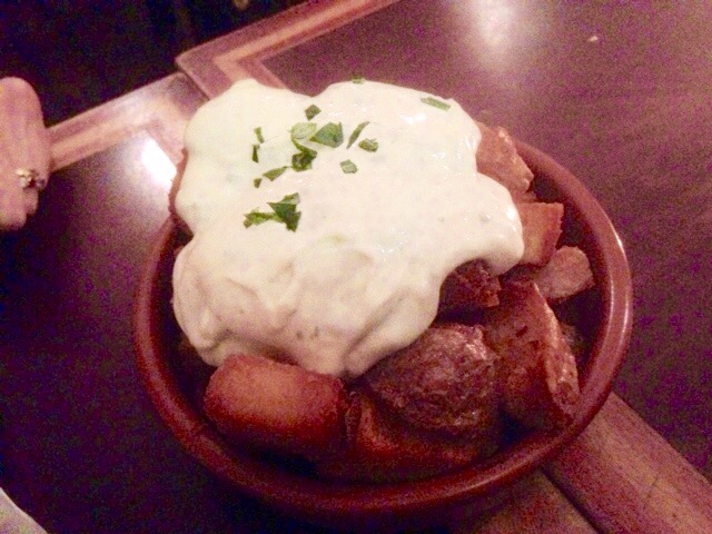 crisp potatoes served with a garlic mayo. A classic tapas dish though not as fine as the Patatas Bravas which is also on the menu. Any potato dish whether Alioli or Bravas is essential for Vegetarians at Byzantium.
