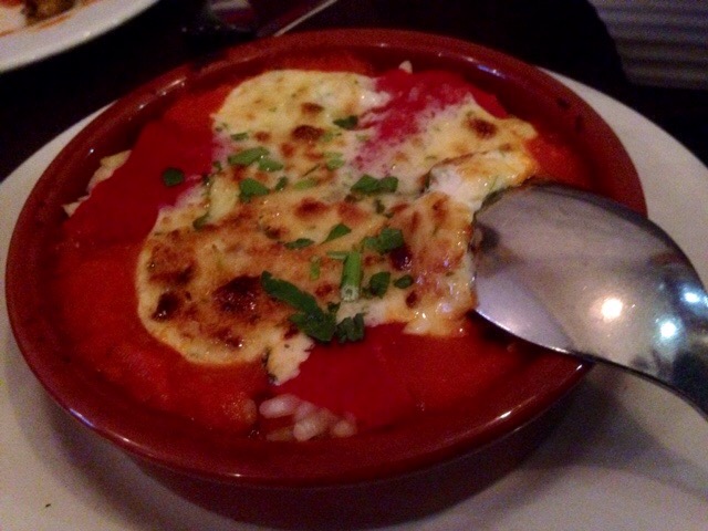 Championes Rellenos: mushrooms stuffed with tomatoes, roasted red peppers and cheese.