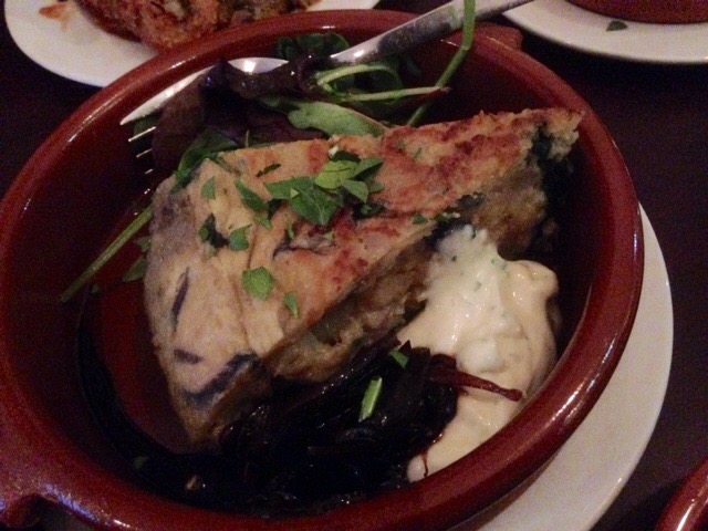 A tasty tomato based stuffed mushroom dish which had a delicious lingering flavour and complimented the tortilla well especially. The cheese didn’t overwhelm the rich tomato sauce. I liked the bulky mushrooms as a contrast to the Patatas Alioli too.