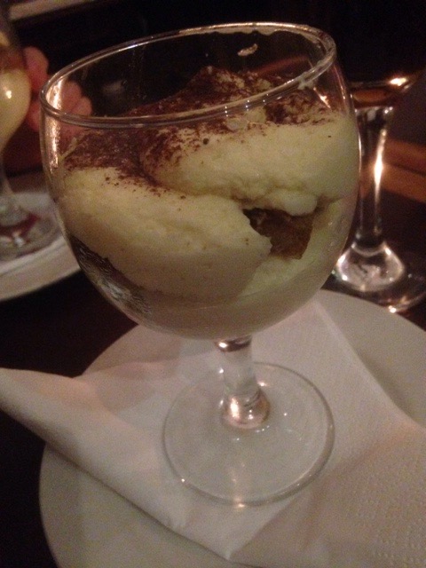 The most disappointing dish of the night. Both Ruth and I chose the Tiramisu. I’m in love with tiramisu and it’s often my first choice when in any menu. Yet in the UK it can be underwhelming, as this unfortunately was. The cream was over whipped and it didn’t ‘pick me up’ at all. Quite the opposite in fact. A disappointing pud. I can’t find anything positive to say about it at all.