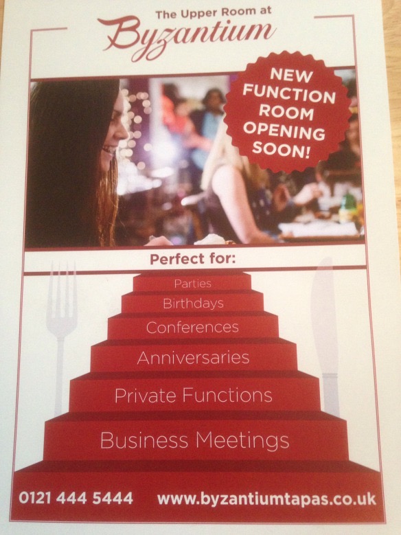 Byzantium is a lovely tapas restaurant and one that Kings Heath is rightly proud. Our food on the night was delicious. The dishes were all well made, with the menu demonstrating a varied and sensitivity to vegetarians and meat eaters are well served too. In fact for veggies there’s enough choice for tears of joy and to return with Christmas bells on next week, and have a completely different menu.