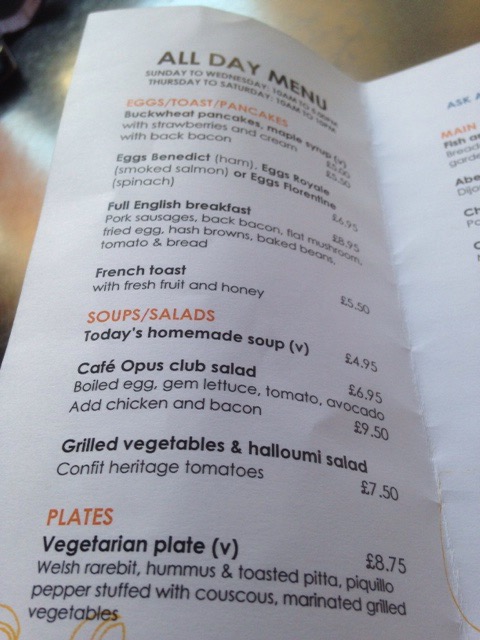 Cafe Opus have now launched a new seasonal menu (See above) that has a number of tempting Vegetarian and Some vegan dishes on it.