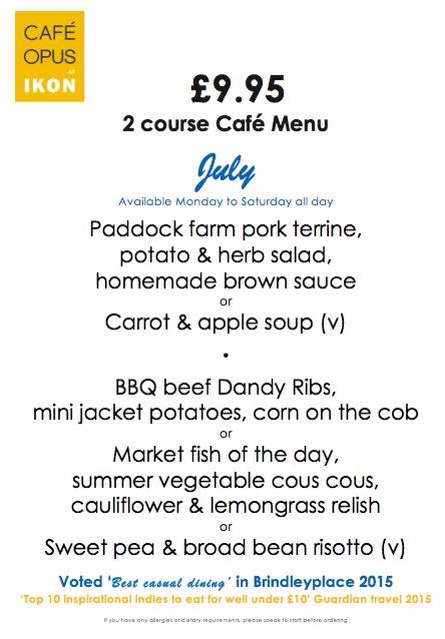 Cafe Opus is a lovely light flooded restaurant for a relaxing brunch or lunch. Part of the Opus family, with Well regarded Opus Restaurant and Bar Opus, the cafe sits comfortably and temptingly in the Beautiful building that is the internationally acclaimed contemporary Ikon Gallery, which is surely one of the best places to visit in Birmingham.