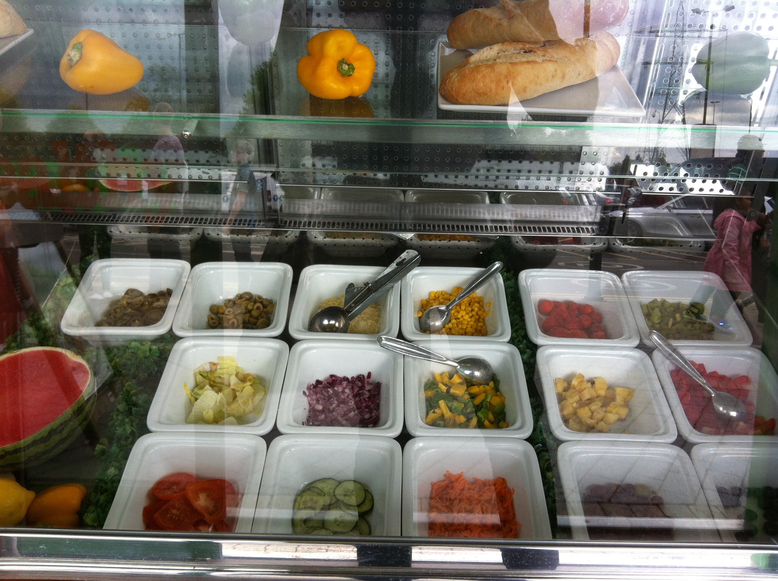 My wrap, was a mixed salad and veg wrap stuffed with my own choice from the salad deli bar. It had carrot, lettuce, sweet corn and other veg fillings (see picture) and was lovely. The bread of the wrap was fresh, soft, firm and didn’t fall apart when bitten into. I added cheese to my wrap, but you could also add salsa or any extra.