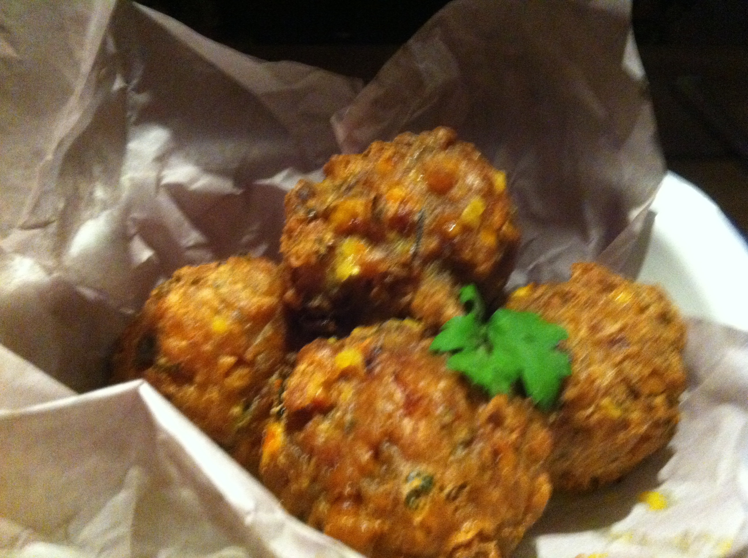 For starters/cutters we both decided to have two vegetarian dishes. Ruth chose the sweet corn fritters and I chose the so called Trini doubles which were two roti with curried Trini chick peas, cucumber, chutney and coconut.