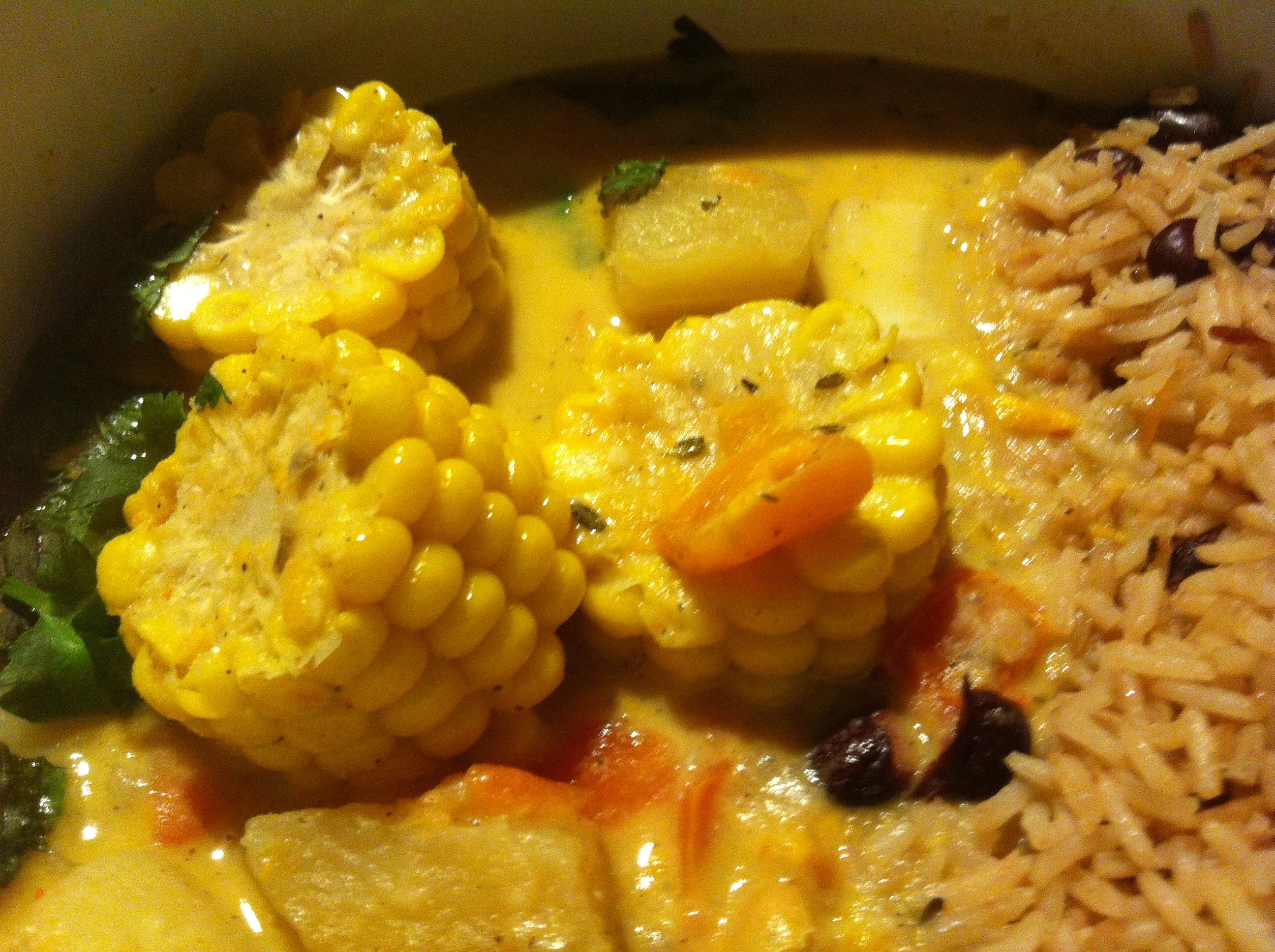For my main course I chose the Rastafari Rundown: this was a lovely dish, with butter beans. Corn cob, greens, carrots, sweet potatoes, fried dumplings, herbs, coconut, with rice N’ peas.