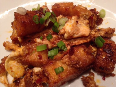 I enjoyed the fritters, the filling was different but had good flavours and filled the batter to leave a satisfying main dish. Again, the sauce that accompanied could have been reduced in quantity in order to get the balance right. I liked the tomato garnish though.