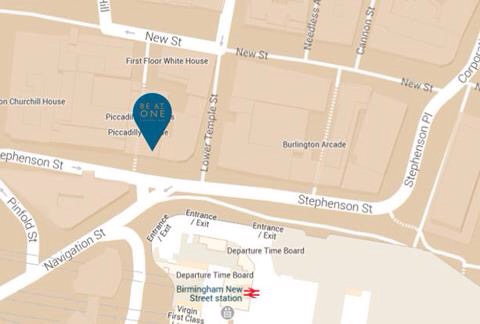 You can find Bar At One on the New Street Station side of The Piccadilly Arcade B2 4BJ.