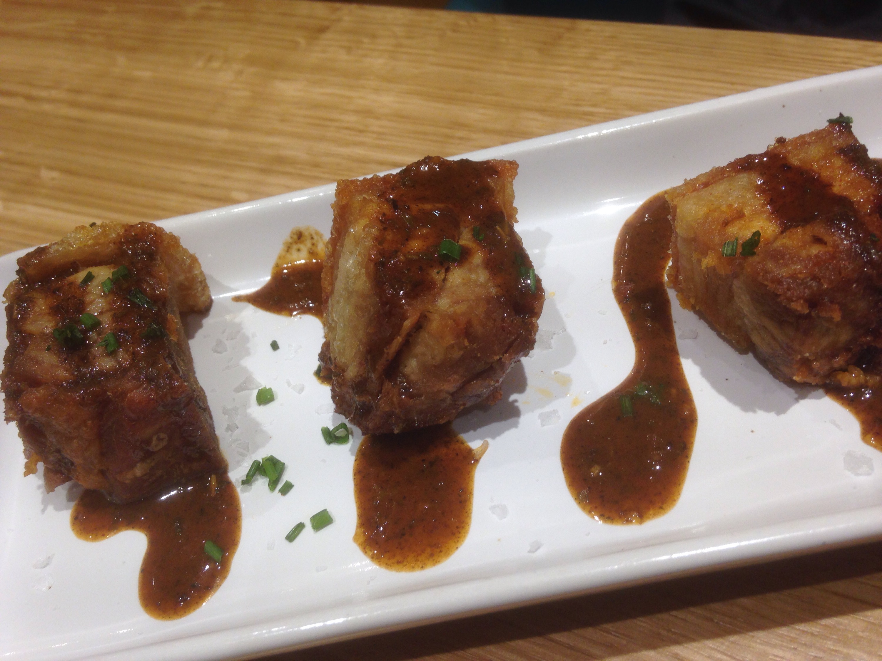 Torreznos con mojo dulce: Ruths pork belly dish. She lapped it up.
