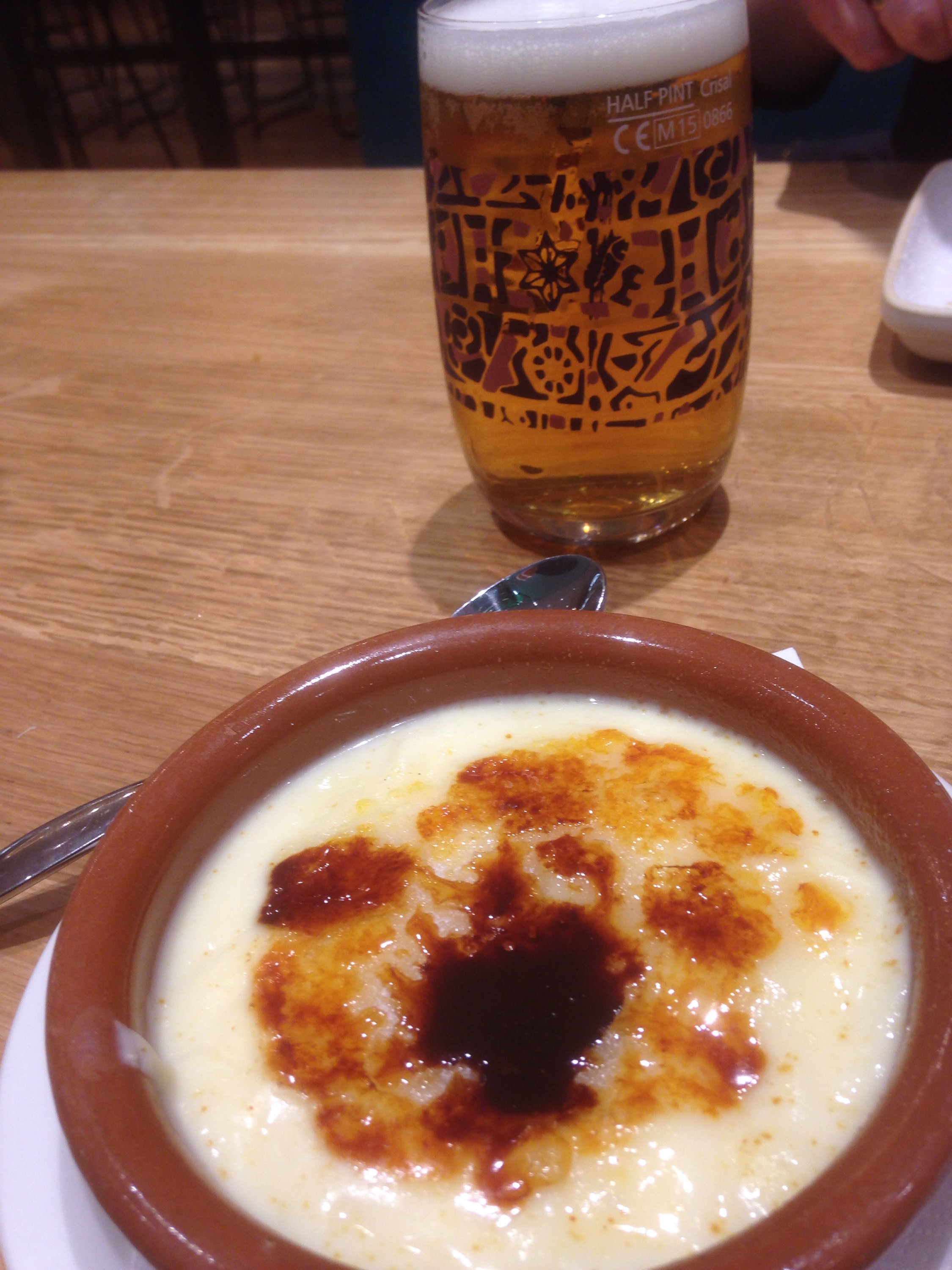 We decided to order the crema Catalana (Traditional Spanish custard made with vanilla, Cinnamon and lemon. Also known as burnt cream and the Torrija: (caramelised brioche bun soaked in custard)