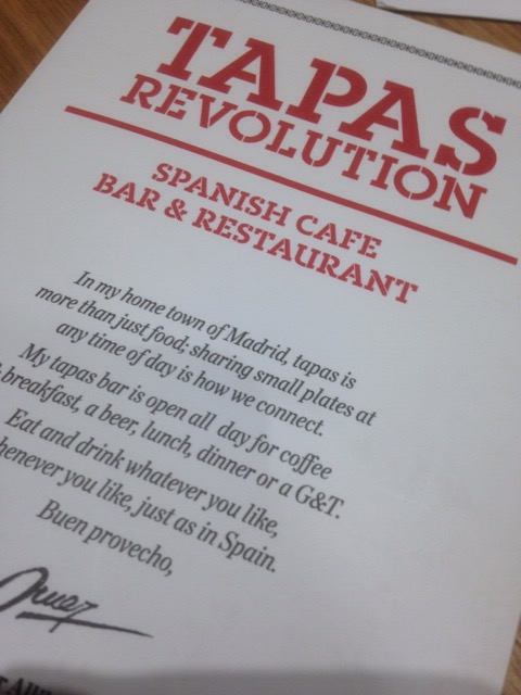 The menu at Tapas Revolution is split equally into Meat, Fish and Veg tapas with a section also for nibbles (Picoteo).