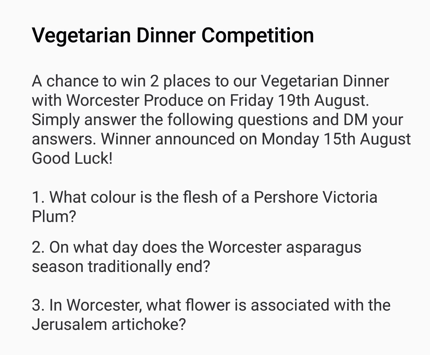 Friday 19th August sees the return of the annual Opus Restaurant Vegetarian Dinner with Worcester Produce.
