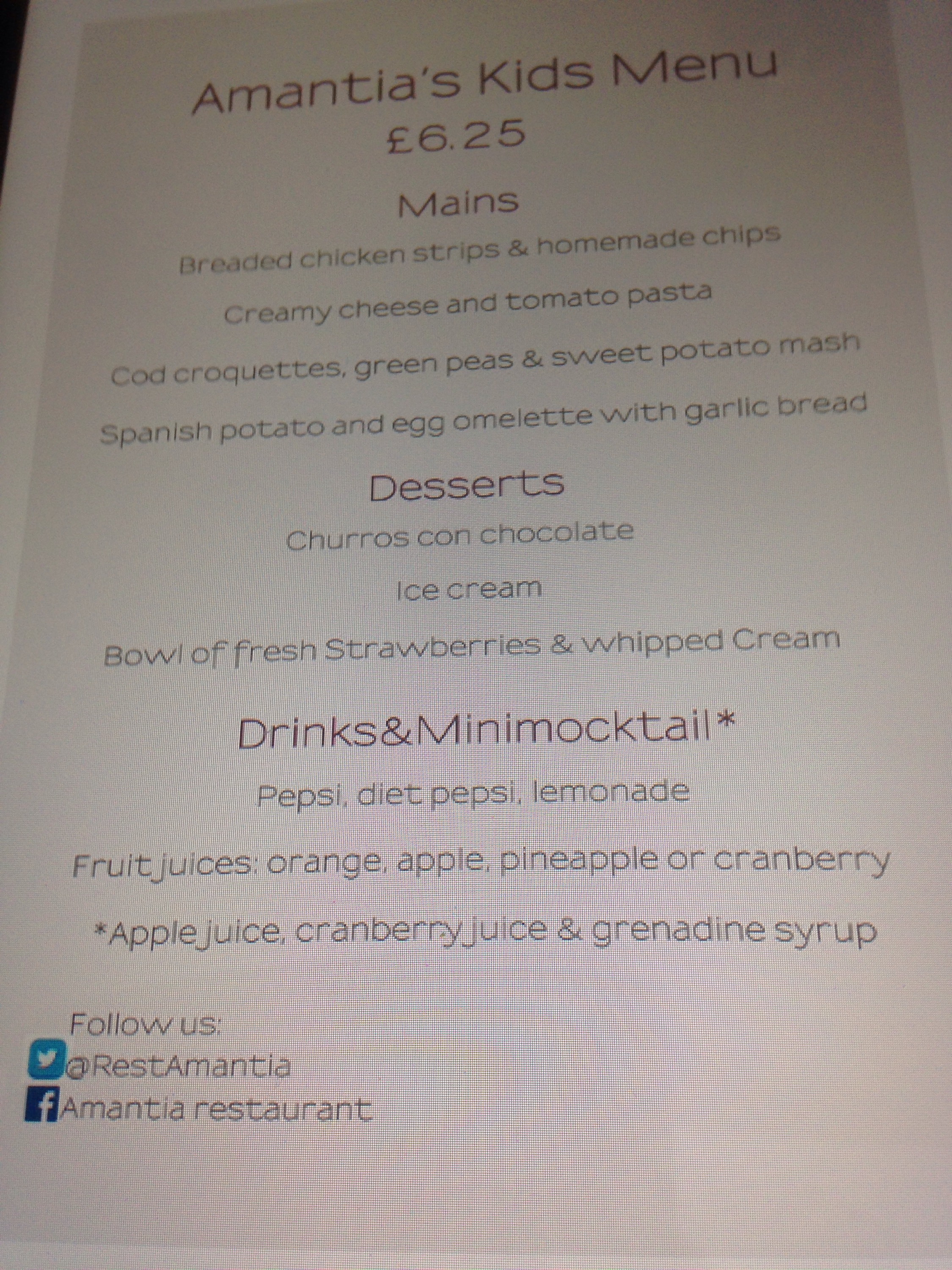 It also has a children’s menu for £6.25. For a main, desert and a drink.