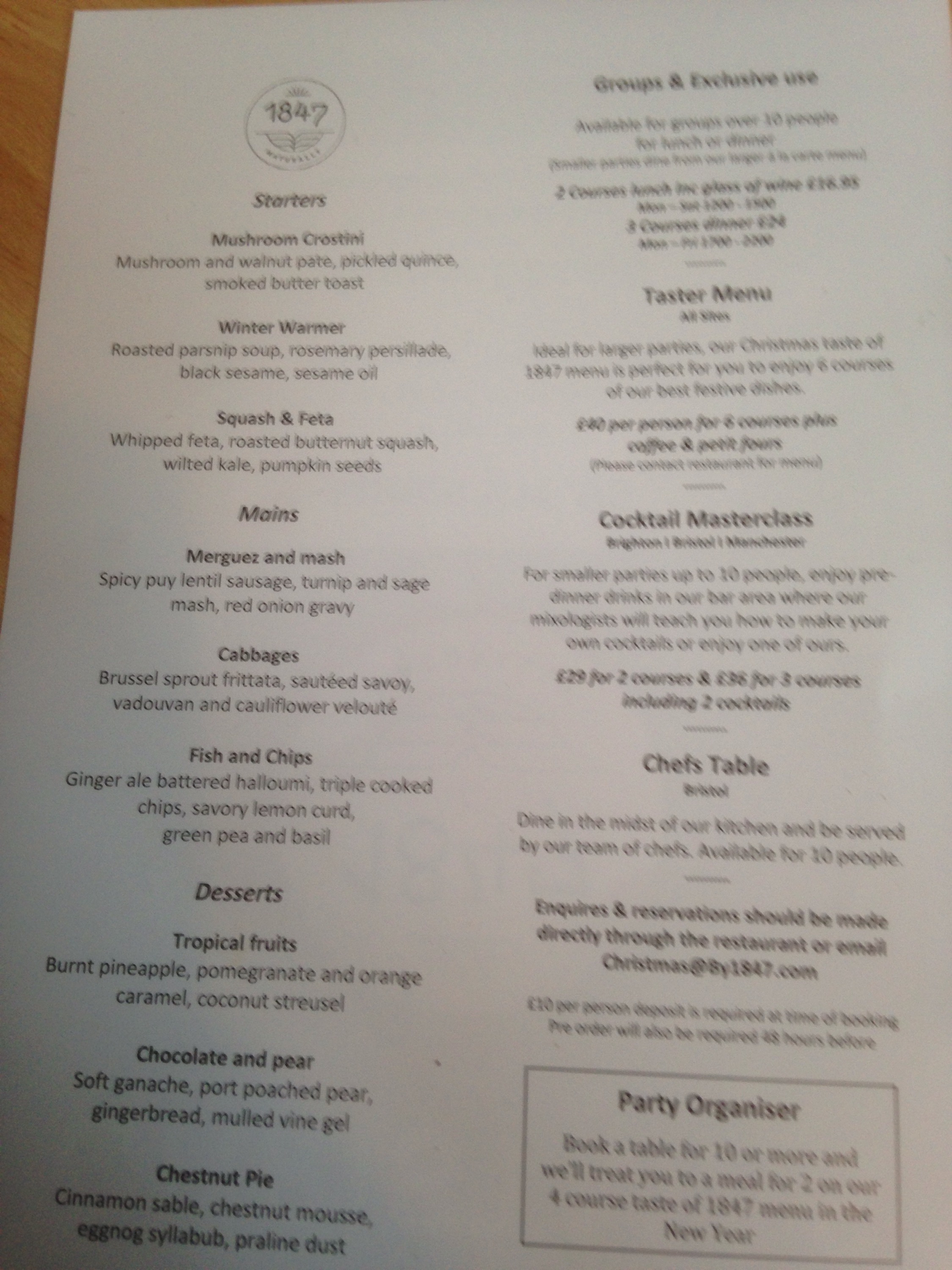 Bistro 1847 in Birmingham City Centre last week launched its modern vegetarian Christmas menu.